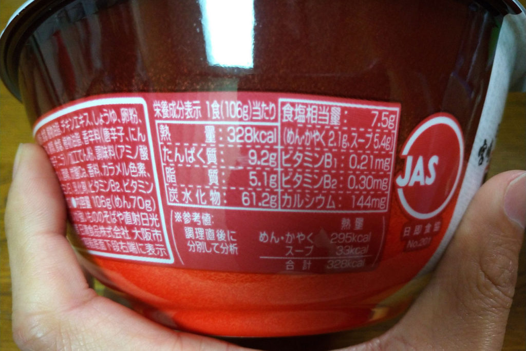 カロリーその他はこんな感じ。パッケージは大きいけど、意外とカロリー高くない。