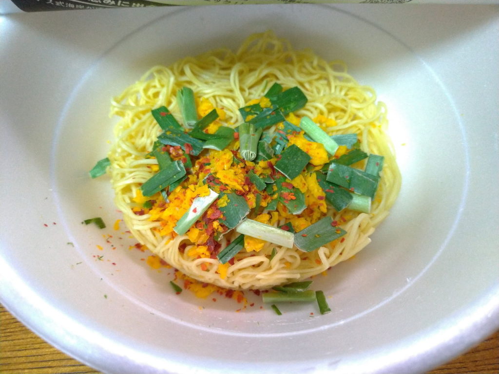 これは「かやく」を開封してお湯を入れる前の状態ね。