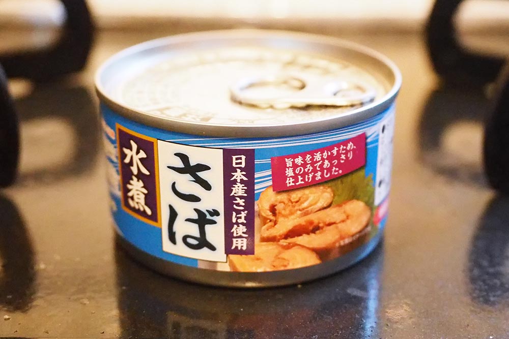 今日の主役 さば缶 を開けましょう。汁は絶対捨てないでくださいね!この汁が栄養と旨味をタップリ含んでます。