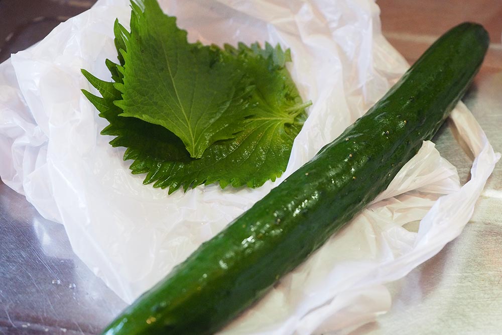 キュウリ。これも豆腐と同様に冷や汁には必須の食材です。