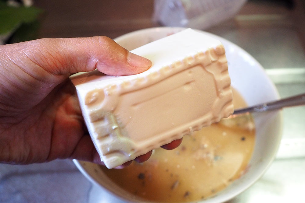 食べやすい大きさに砕きましょう(投入前に包丁で切ったり、手でちぎったりしてもOK)。