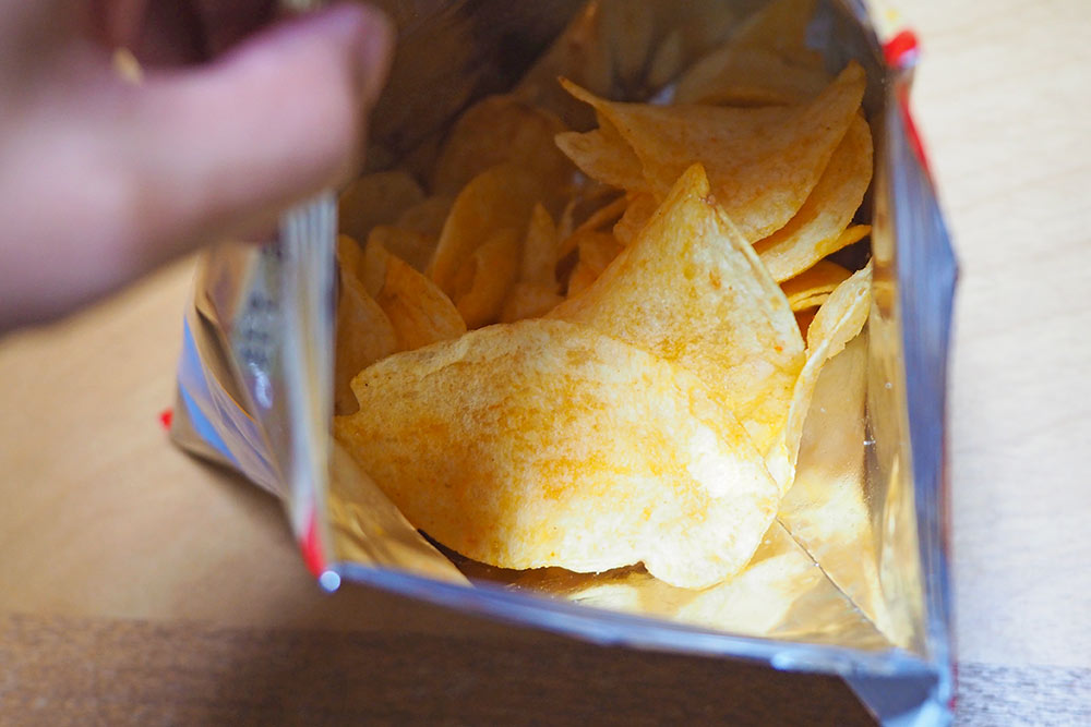 ポテトチップスの大きさや厚さは通常のものと変わりなし。