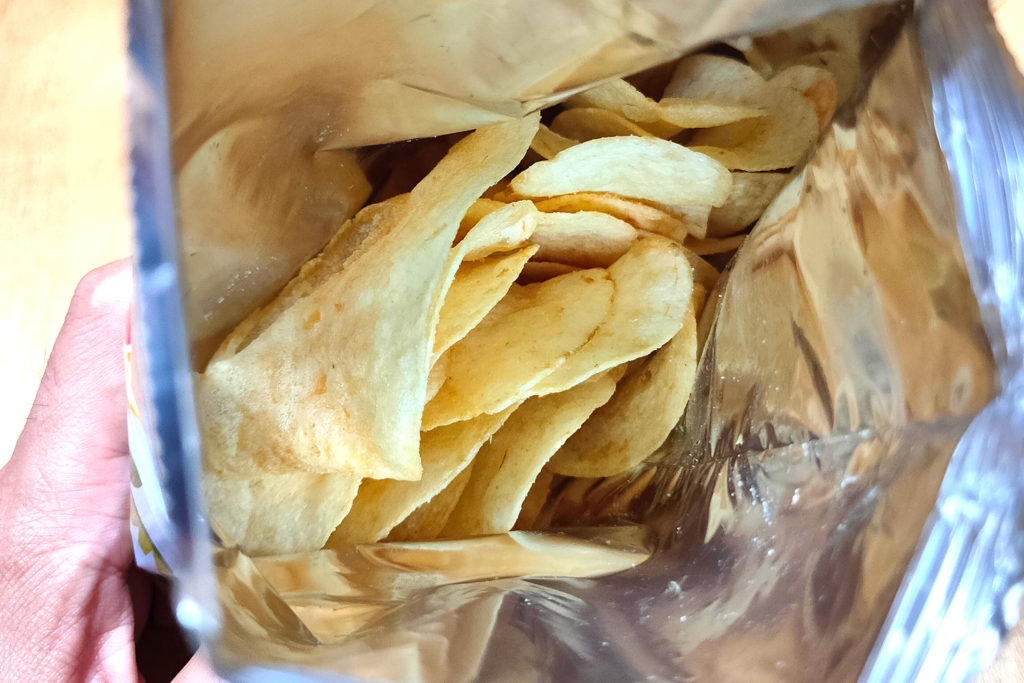 ポテトチップスの大きさや厚さは通常のものと変わりありません。