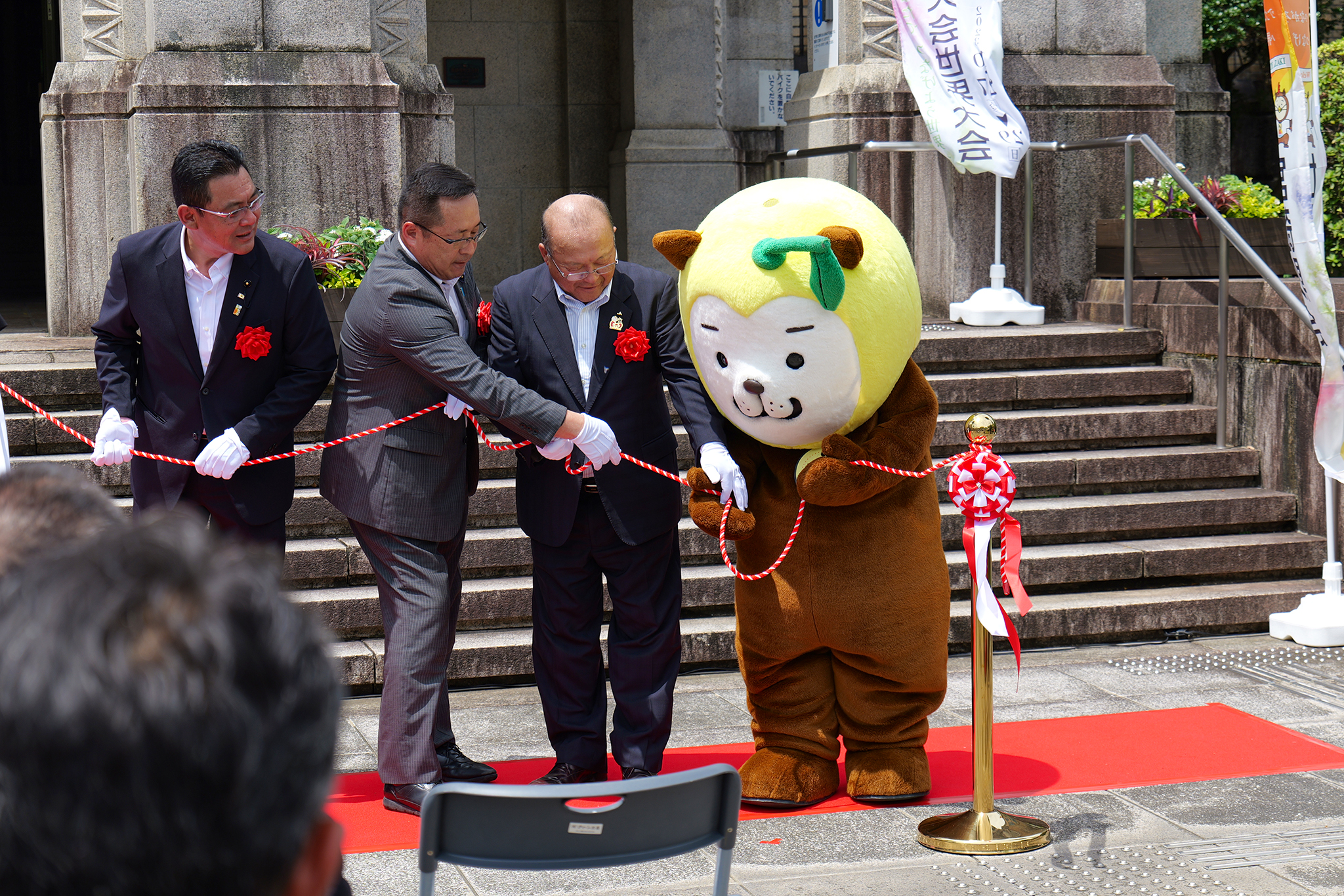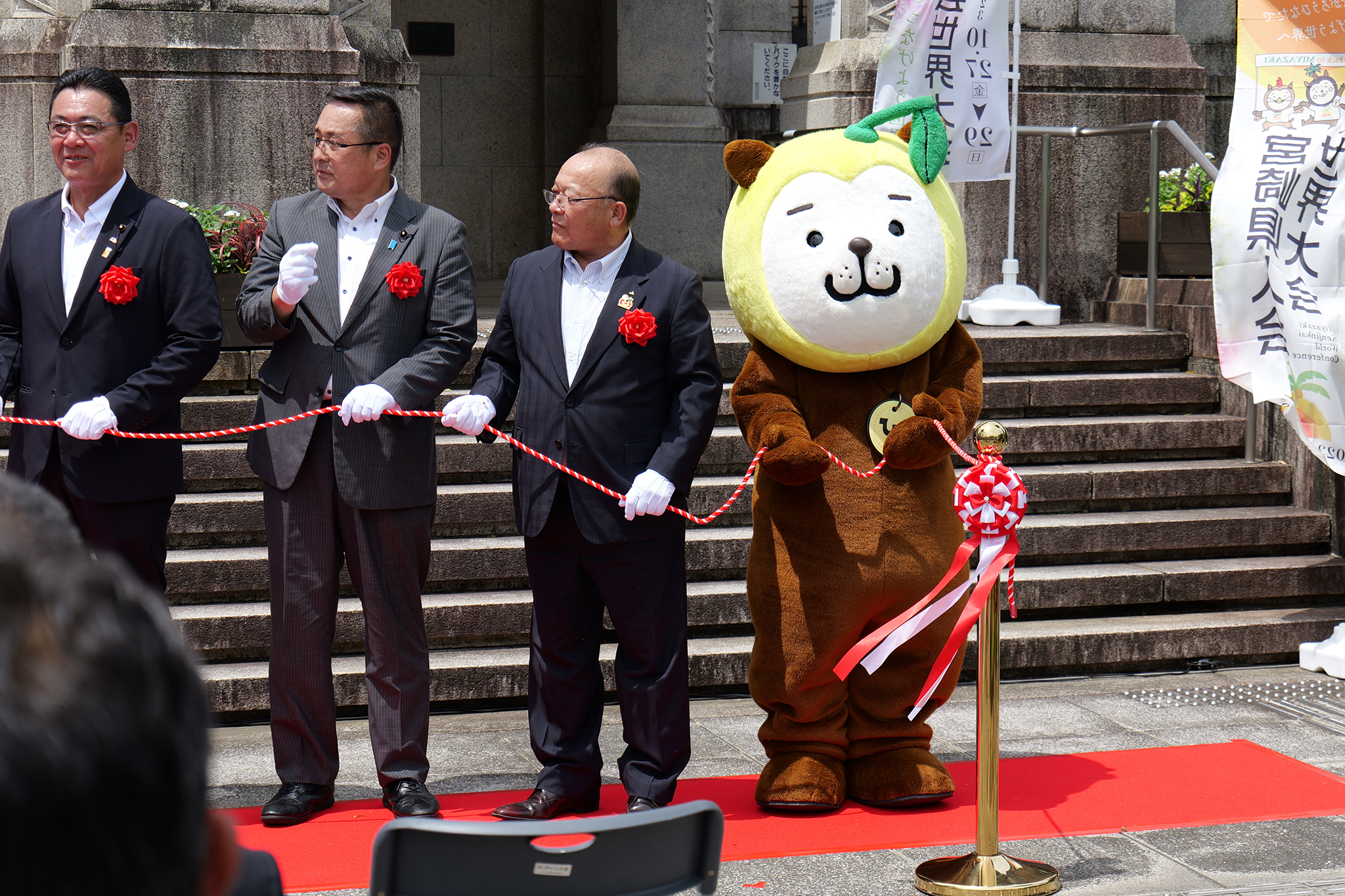 実行委員会、来賓、そしてスペシャルゲスト宮崎県シンボルキャラクター「みやざき犬」から「ひぃくん」で除幕